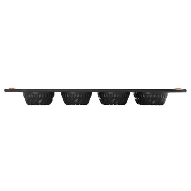 • Bordas largas com alças de silicone resistentes ao calor. Seguro transportar a forma para superfície