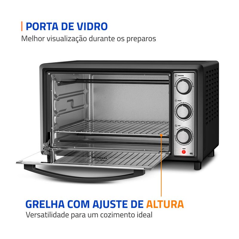 Capacidade de 48 Litros: Espaçoso e com alto desempenho, permite preparar vários pratos ao mesmo tempo ou assar receitas grandes, ideal para toda família.