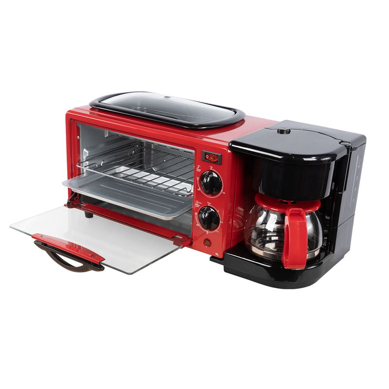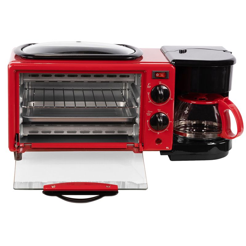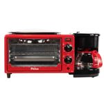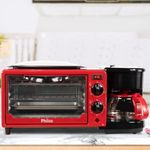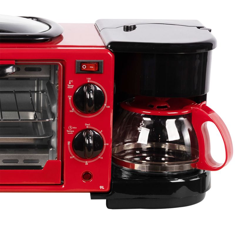 Ele é o 3 em 1 que vai tornar sua rotina em casa muito mais prática. Sabe como? Ele conta com cafeteira para 550ml de café, filtro removível e jarra de vidro; forno com capacidade de 9 litros, com resistência superior e inferior, timer e desligamento automático; e Grill com tampa de vidro.