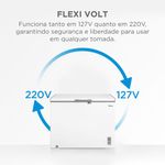 Seu controle de temperatura externo facilita o ajuste preciso, enquanto as funções Refrigerar, Conservar e Freezer permitem adaptar o uso conforme a sua necessidade, seja para bebidas, alimentos frescos ou congelados, com uma faixa de operação entre -28°C a 10°C. A tecnologia Inverter garante um resfriamento mais rápido, silencioso e com máxima eficiência energética, com classificação A no novo padrão do Inmetro. E além disso, a tecnologia Flexi Volt oferece liberdade total de uso, funcionando perfeitamente em tomadas de 127V ou 220V.