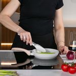 Com design contemporâneo, o modelo ainda conta com a certificação PFOA free, ou seja, é livre de liberação de toxinas. Produto de alta durabilidade, que ao final do ciclo ainda pode retornar para se tornar uma nova peça, pois o alumínio da panela é 100% reciclável.