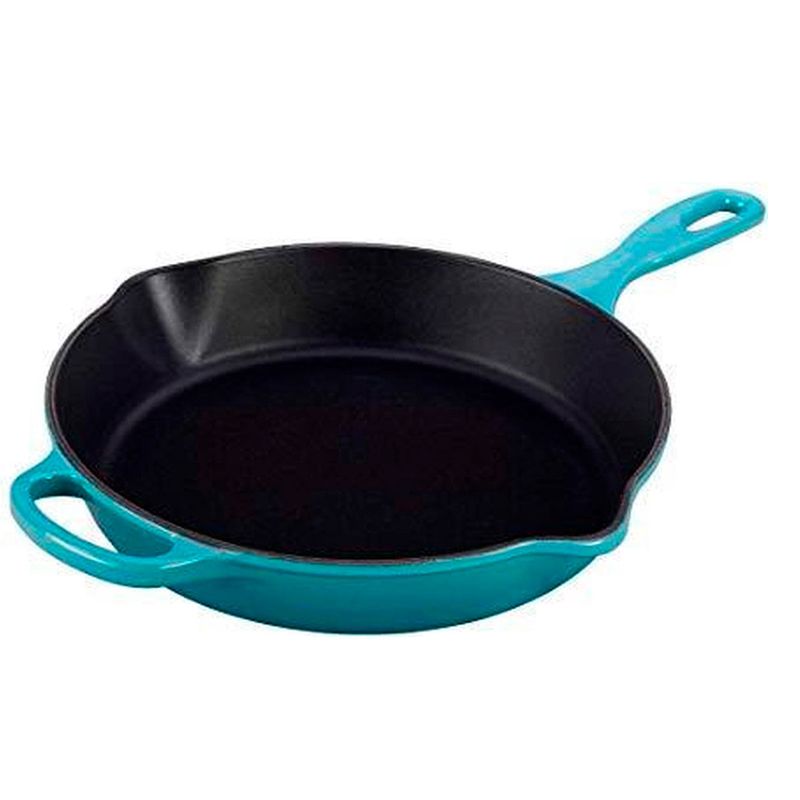 As Skillet de ferro fundido esmaltado, distribuem o calor uniformemente e o alimento cozinha por igual, sem queimar no fundo ou ficar mais firme na superfície.