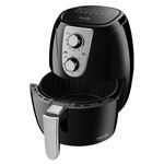 Cozinhe alimentos mais saudáveis e sem óleo com a nova Fritadeira a Ar Maxis AF-33. Com capacidade de 3,2L, você assa, cozinha, frita e gratina seus alimentos. São 1270W de potência para preparar: batata frita congelada (12 min.), nuggets (15 min.), frango (20 min.), carnes (12 min.) peixes (10 min.), pão de queijo (15 min.), bolo (30 min.), dentre outras receitas maravilhosas. A Fritadeira a Ar Maxis AF-33 Preta possui as lâmpadas piloto que indicam funcionamento e aquecimento do produto, o controle de temperatura de até 200C e timer de 60 minutos com aviso sonoro e desligamento automático. A cuba e cesto possuem revestimento antiaderente que não gruda, e facilita na lavagem.