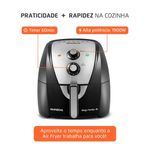 Design compacto e funcional: ocupa pouco espaço na bancada e oferece alta potência para preparar pratos rápidos e saborosos. O timer com aviso sonoro permite que você se dedique a outras tarefas enquanto a fritadeira trabalha por você.