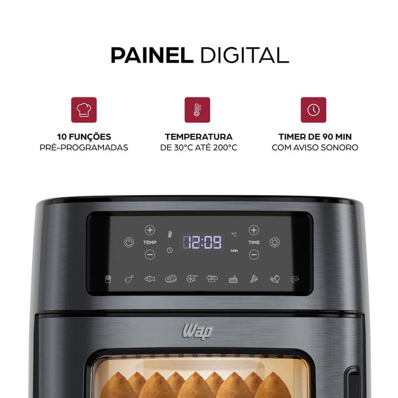 painel digital da AIRFRY OVEN BLACK INOX possui 10 funções pré-programadas para