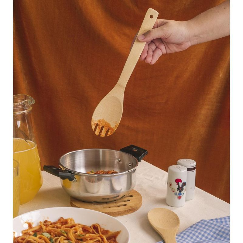 Versatilidade: Ideal para diversas ocasiões, desde o dia a dia em casa até eventos especiais, o garfo de bambu da Mozcada combina funcionalidade com estilo.