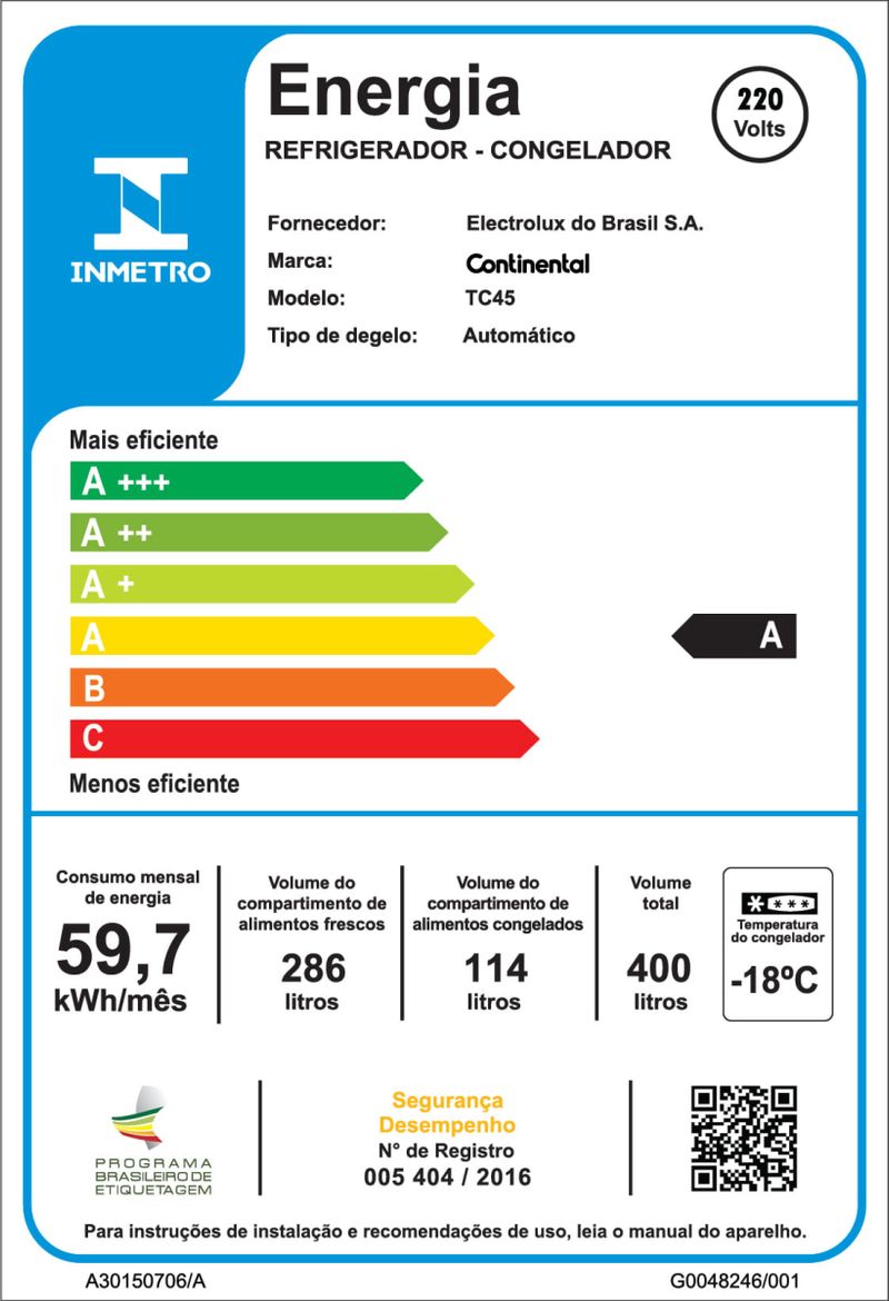 Geladeira Continental Duplex (TC45), um produto que se ajusta à sua rotina e deixa os dias mais fáceis.
