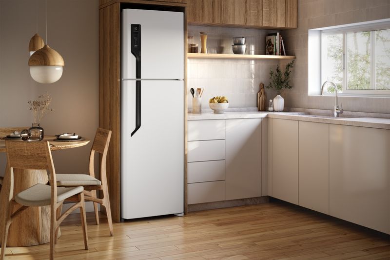 A Geladeira Electrolux Frost Free 480L Efficient AutoSense Duplex HortiNatura Branca (TF71) tem tecnologias que facilitam o dia a dia e ainda conserva os alimentos com mais sabor e evitando o desperdício. Ela tem a tecnologia AutoSense, exclusiva da Electrolux, que usa Inteligência Artificial para controlar a temperatura de acordo com os hábitos de uso. A geladeira pode ficar mais fria ao identificar uma maior abertura de portas ou estabilizar a temperatura em momentos de menos uso. A tecnologia também ajuda a prolongar a vida dos alimentos por até 30% mais tempo. E para ajudar na conservação, a gaveta HortiNatura preserva o frescor de frutas e vegetais por até 2x mais tempo. Pensada para acomodar alimentos e bebidas com facilidade, o freezer da Geladeira Electrolux é ideal para preservar os alimentos. Ele é o maior freezer do mercado, com 128L. O espaço interno tem prateleiras deslizantes que possibilitam diversas configurações e os compartimentos MoveAdapt permitem armazenar alimentos e bebidas de diferentes tamanhos e formatos. Quando o assunto é praticidade, o compartimento IceMax tem abertura exclusiva que permite a reposição da água sem respingos. Ele também impede a mistura de odores e é muito fácil de remover. O puxador da porta é feito com material parcialmente reciclado, que ajuda a reduzir o desperdício por meio da circularidade, aliando funcionalidade e consumo consciente. Por fim, uma dupla de elementos essenciais para o dia a dia. A luz de LED permite uma melhor visualização da geladeira, com baixo consumo de energia, e a bandeja de ovos traz mais conveniência e organização. Se você quiser deixar frutas e vegetais mais frescos por mais tempo, o Filtro ExtraFresh (vendido separadamente) remove até 90% do gás etileno e desacelera o amadurecimento.