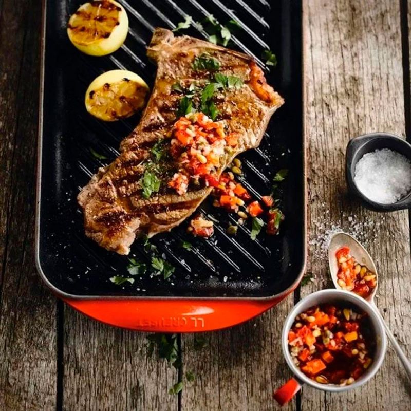 De vegetais saborosos a bifes, frango e camarão de dar água na boca, a Grelha Retangular produz um sabor delicioso como o de uma grelha de churrasqueira. Suas ondulações permitem que a gordura e o óleo escorram. Design ergonômico, pode ser levado o prato do forno ou fogão para a mesa sem complicação.