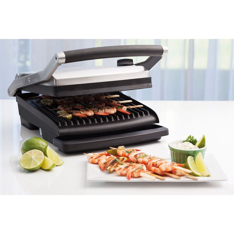 O Grill Elétrico Adjusta em Aço Inox com Bandeja Removível 127 V da linha de Eletroportáteis Tramontina by Breville possibilitará para o seu dia toda a facilidade na hora de realizar os mais diferentes tipos de preparos. Seja para selar uma carne, grelhar legumes ou preparar um sanduíche gourmet. Oferece para a sua rotina alta qualidade, pois conta com chapa superior articulada flutuante ajusta-se a carnes frutos do mar, verduras e sanduíches de todas as espessuras. Controle de temperatura variável, projetada para selar carnes em minutos e chapas exclusivas antiaderentes com angulação para redução da gordura. Resistência de alta temperatura para aquecimento rápido e veloz. Bandeja de gotejamento removível pode ser utilizada em lava-louça. Luzes 'LIGAR/DESL.' e 'PRONTO' integradas indicam quando o grill está aquecendo ou quando está pronto para uso. Braços em metal fundido de alta resistência para durabilidade, força e estilo, além de pés antiderrapantes. A escolha ideal para fazer preparos saudáveis e com muito sabor.
