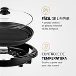 REVESTIMENTO ANTIADERENTE: Possui grelha ondulada de 40cm e revestimento antiaderente. Os alimentos deslizam facilmente e não grudam no Grill.