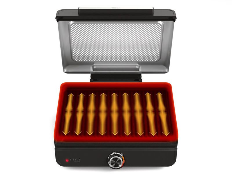 Conheça o Ninja Sizzle, grill compacta para uso interno que sela e grelha suas refeições favoritas diretamente do seu balcão. Com temperaturas de até 260°C, você alcança marcas de grelha perfeitas com calor direto e uniforme de ponta a ponta. Selagem perfeita para pratos variados.