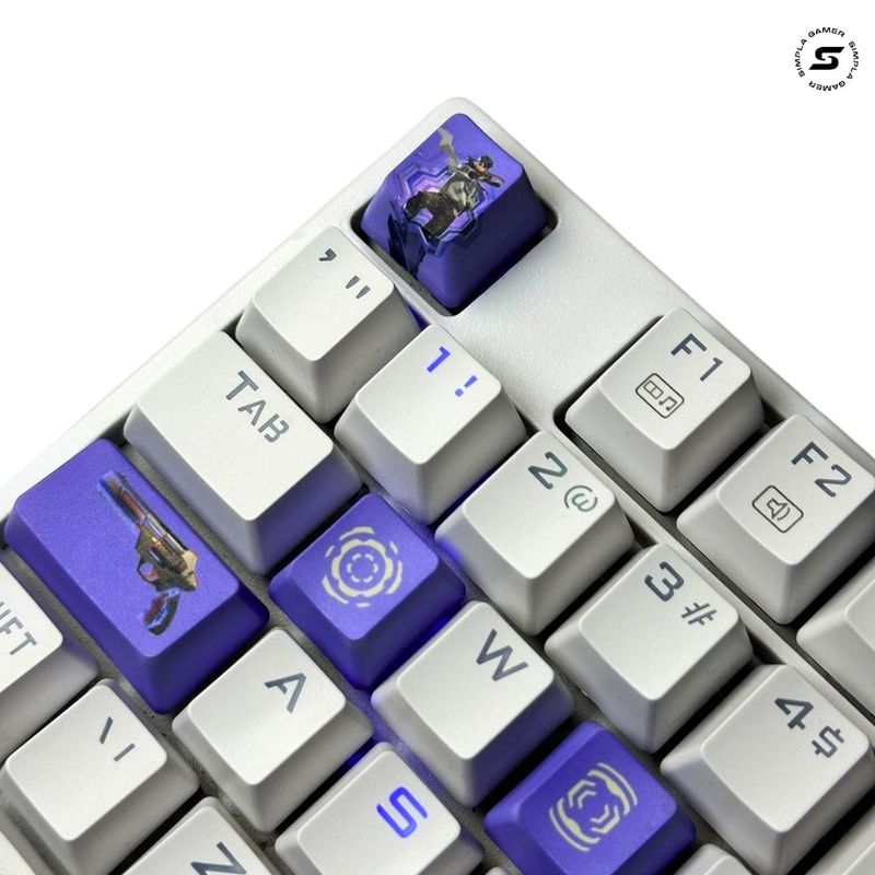 As teclas da ISO de Valorant contém 10 Keycaps Personalizadas Valorant ISO foi desenvolvido para jogadores que querem destacar o teclado mecânico com o tema da agente ISO de Valorant.