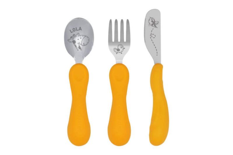 Jogo Anatômico Colher Garfo E Faca Com Inox Girafa Lola 3Pcs (Em Silicone E Inox) - Marcus Marcus