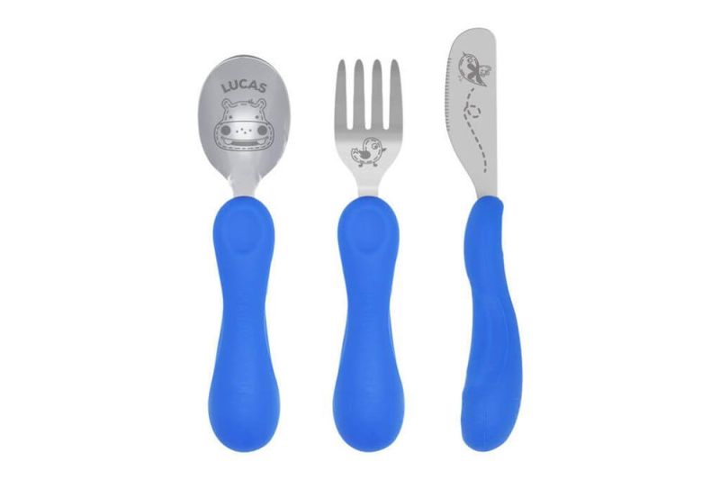 01 Jogo Anatômico Colher Garfo E Faca Com Inox Hipopótamo Lucas 3Pcs (Em Silicone E Inox) - Marcus Ma