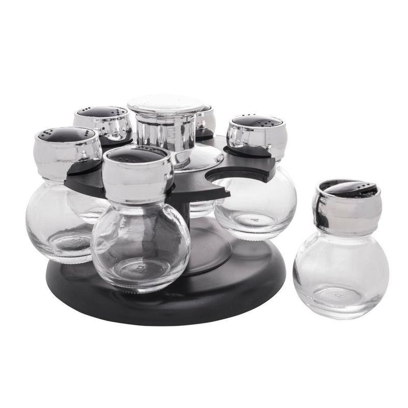 6 Porta Tempero com Base Wolff Poli Preta de Vidro 17cm
