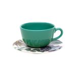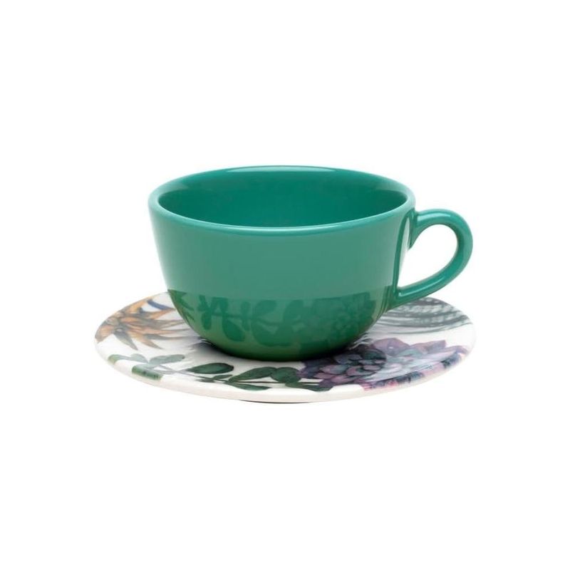 Toque Contemporâneo: A xícara em cor sólida contrasta com o pires estampado, garantindo um visual moderno.