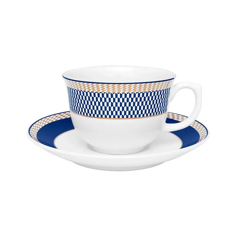 Conteúdo da Embalagem: 6 pratos rasos (28 cm) / 6 pratos fundos (23,5 cm) / 6 pratos de sobremesa (22 cm) / 6 xícaras de chá (240 ml) com 6 pires (15 cm).
