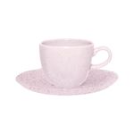 O conjunto possui um tom de rosa suave e elegante, que é aplicado através de um processo manual com pigmentos de tinta. Isso garante que cada prato e cada xícara sejam decorados de forma exclusiva e artesanal.