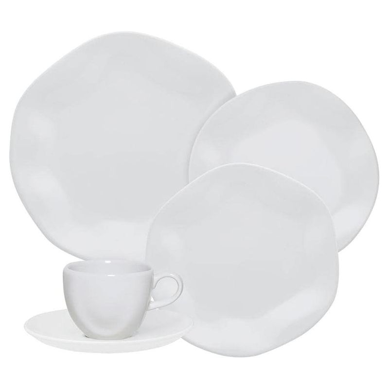 Conteúdo da Embalagem: 6 pratos rasos (27,5 cm) / 6 pratos fundos (22,5 cm) / 6 pratos de sobremesa (21,5 cm) / 6 xícaras de chá (220 ml) / 6 pires (16 cm).