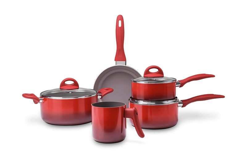 Jogo de Panelas Brinox Antiaderente Ceramic Life 5 Peças Smart Plus Vermelho