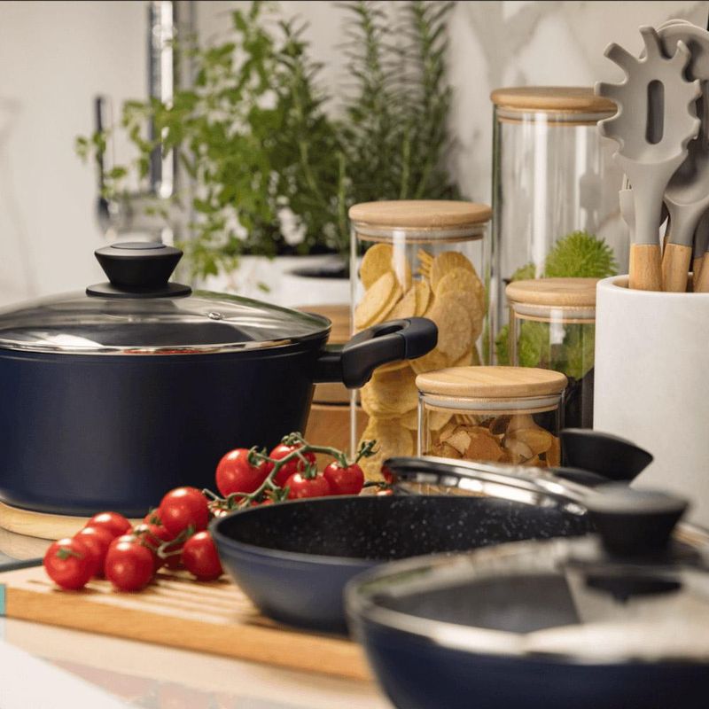 Prepare suas refeições diárias com praticidade e segurança usando o Jogo de Panelas Everyday. Este conjunto de 4 peças possui revestimento cerâmico antiaderente de três camadas, feito com tecnologia suíça atóxica e livre de PFOA e PFAS, que permite cozinhar com o mínimo de óleo.