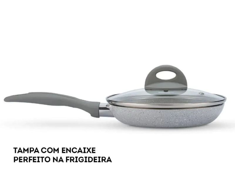 O Jogo de Panelas Brinox Antiaderente Ceramic Life 5 Peças Marble Blend com Indução Cinza Claro é composto por: