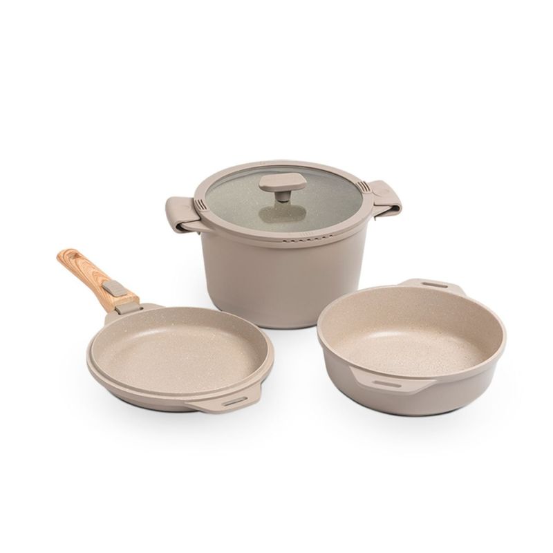 Jogo de Panelas Empilhável Brinox Loft 7 Peças Areia – Antiaderente, Indução e Cabo Removível