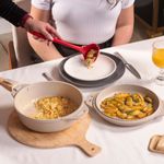 O sistema empilhável com cabo removível otimiza espaço em armários e gavetas, ideal para quem valoriza organização. Compatível com todos os tipos de fogão — inclusive por indução — e forno (sem o cabo), o jogo entrega versatilidade máxima.