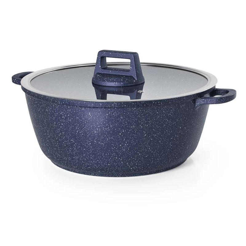 Caçarola Baixa 28cm: Ideal para refogar carnes e legumes, preparar molhos e risotos.