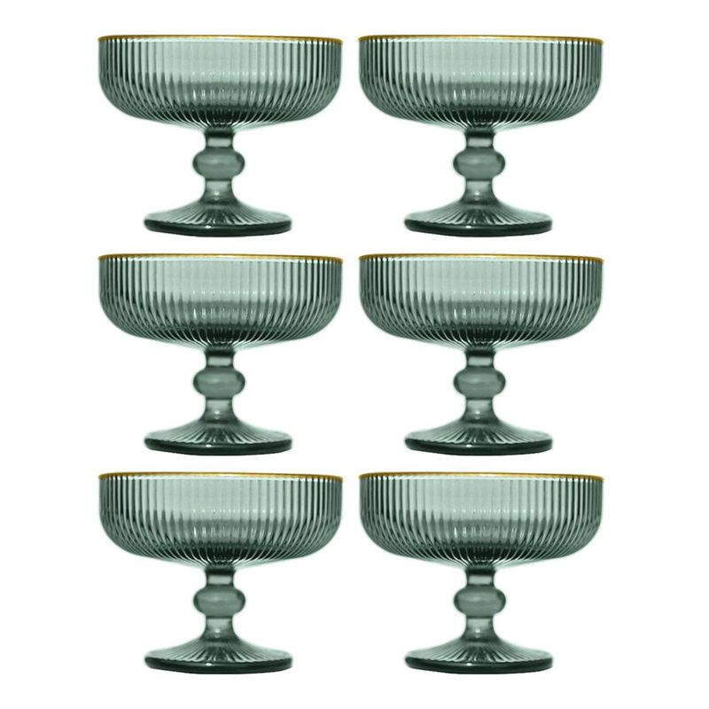 O Jogo de 6 Taças para Sobremesa em Vidro com Borda Dourada 310ml L'Hermitage Cameratta é a combinação perfeita entre sofisticação e praticidade. Com uma elegante coloração verde e bordas douradas que conferem um toque refinado, essas taças são ideais para servir sobremesas de forma estilosa e charmosa.