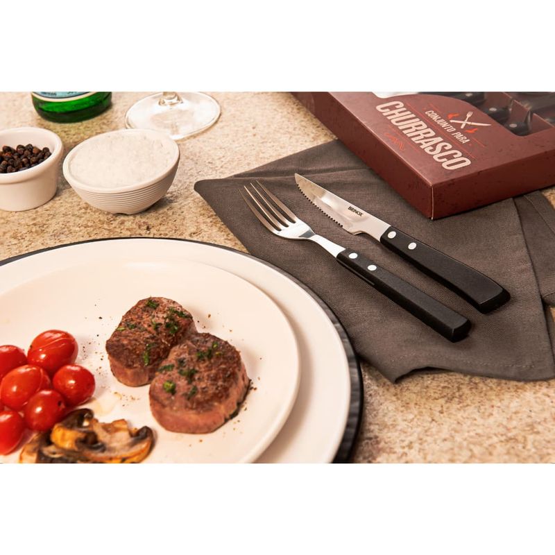 Todos sabemos que saborear um bom churrasco ou uma carne com preparo especial fica ainda melhor quando temos uma faca que garante o corte perfeito e com segurança, e um garfo que permite precisão na hora de segurar a comida.
