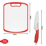 Já a tábua de corte, resistente e higiênica, protege suas superfícies e facilita o manuseio dos alimentos.