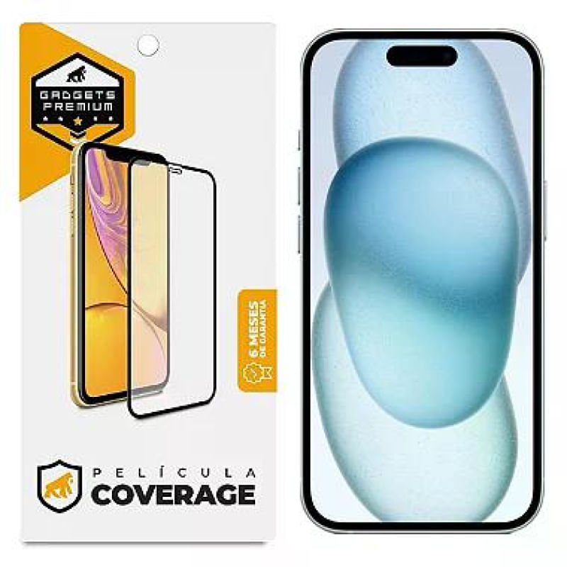 Kit Capa Couro Dual Preta e Pelicula Coverage 5D Pro Preta para iPhone 15 Plus - Gshield