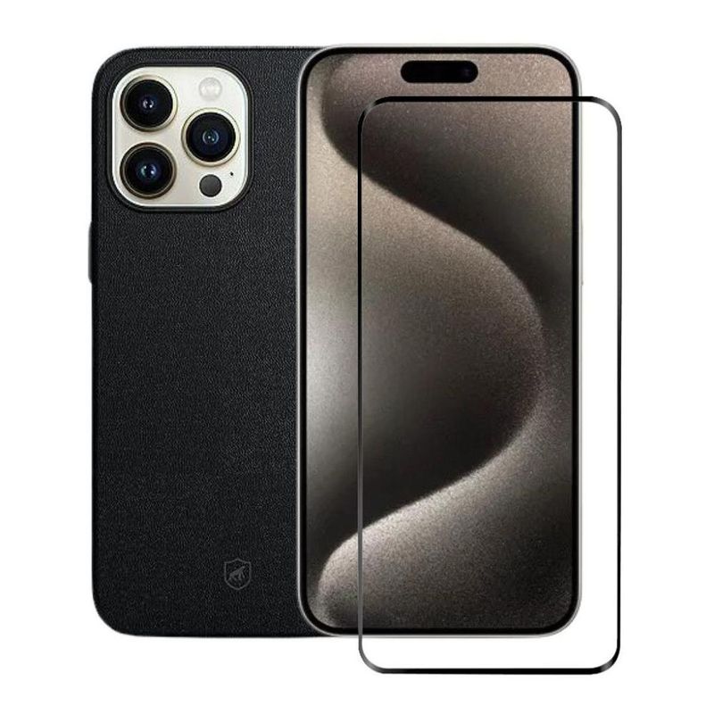 01 Kit Capa Couro Dual Preta e Pelicula Ultra Glass para iPhone 15 Pro Max - Gshield