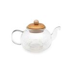 1 bule com tampa de madeira de bambu, alça para mão e capacidade para 600 ml;