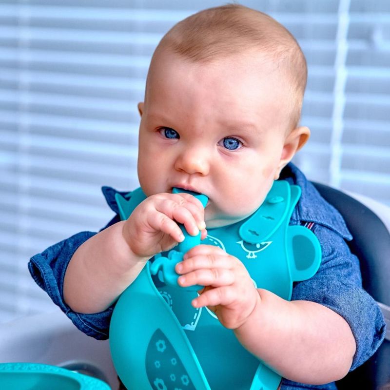 Material 100% silicone: flexível, resistente e seguro para o uso infantil.
