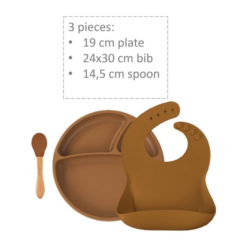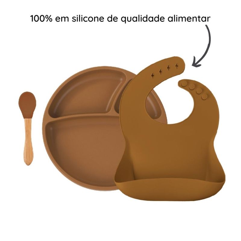 01 Kit de Alimentação Silicone BLW Set 2 Woody Brown - Minikoioi