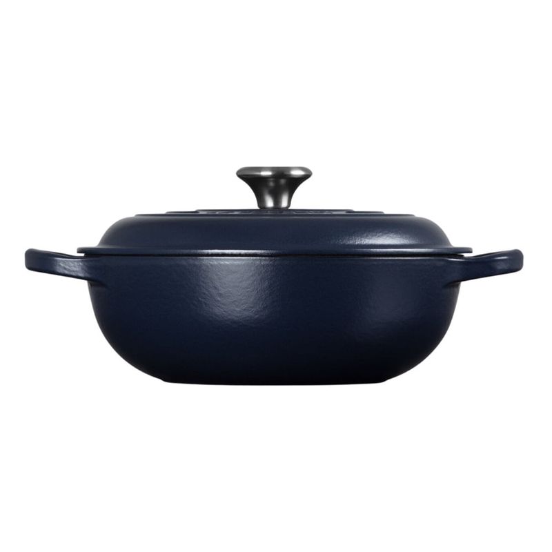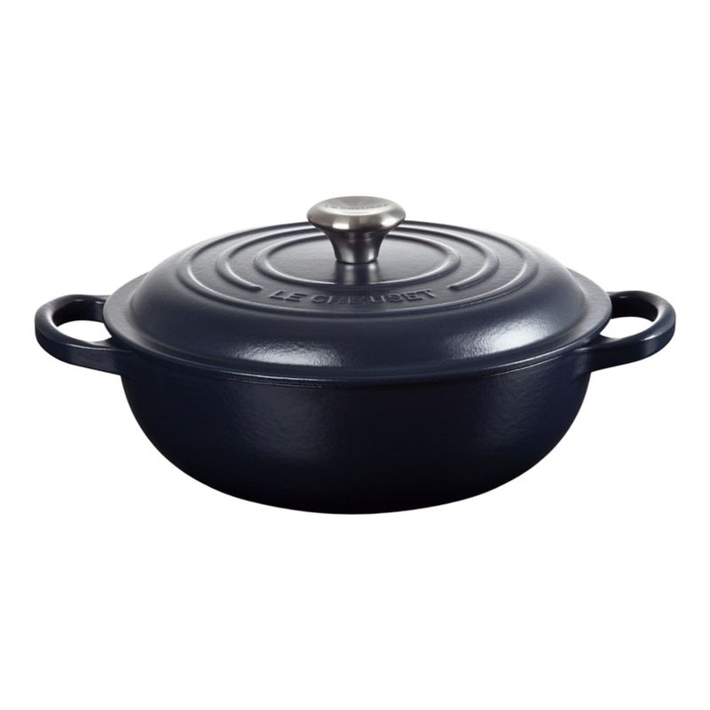 • 01 PANELA DE ENSOPADO LE CREUSET SIGNATURE EM FERRO FUNDIDO 22CM AZUL NAVY