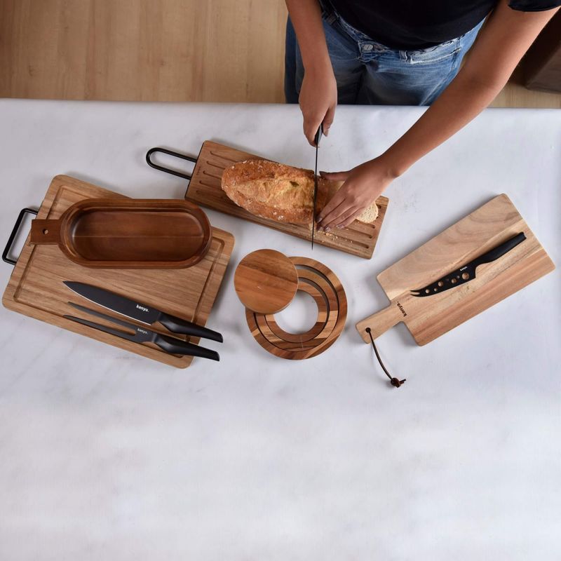 •Tábua fabricada em madeira acácia, conhecida por sua resistência e durabilidade