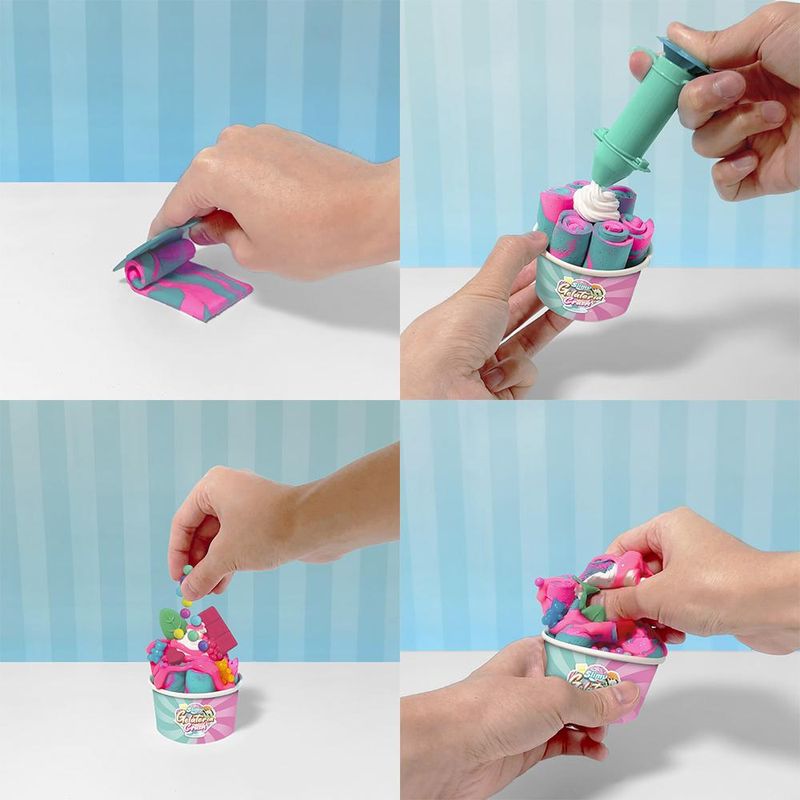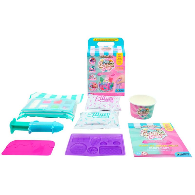 Com o Kit Slimy de Sorvete Slimy Gelateria, as crianças podem criar sorvetes de slime superrealistas em cones ou rolos! Misture e modele os ingredientes para formar sorvetes deliciosos, decorando com confeitos e brilhos. Depois, esmague para uma sensação cremosa e divertida. Ideal para estimular a criatividade e habilidades motoras, proporcionando uma experiência sensorial única e divertida.