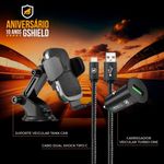 Kit Suporte Veicular Tank Car Automatic + Cabo Turbo Militar - 1,5M - Tipo C / USB-A + Carregador Veicular Turbo One - Gshield