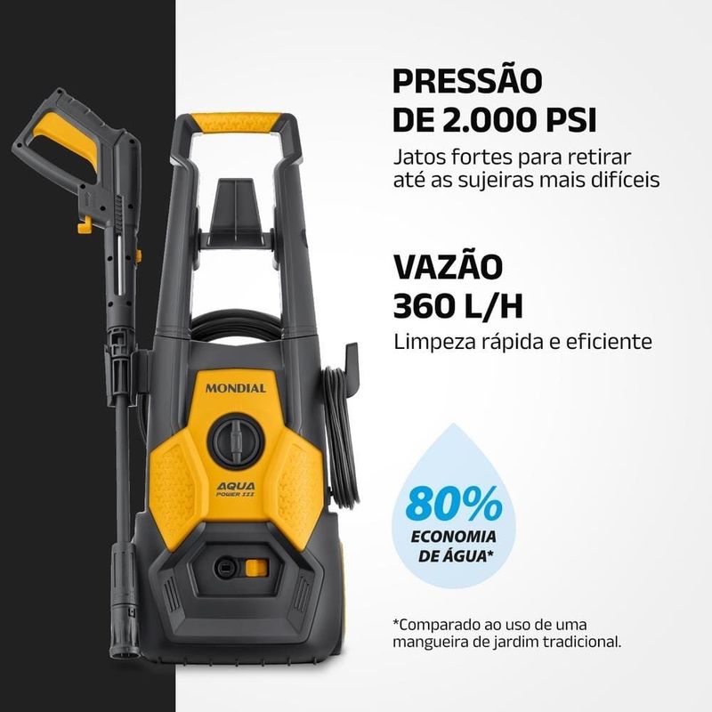 Para quem busca máxima performance, a Lavadora de Alta Pressão Mondial Power III 1800W entrega potência, economia e praticidade. Feita para limpezas pesadas, ela oferece pressão de 2.000 PSI e vazão de 360 litros por hora, removendo sujeiras difíceis com rapidez e eficiência.