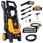A lavadora de alta pressão e desobstruidora WAP Combate Turbo Ultra 2600 é a melhor opção para limpar sujeiras pesadas e profundas com rapidez e agilidade, economizando tempo e até 80% de água se comparada à mangueira comum.Com motor de indução, 1.700W de potência e pressão máxima de 2.100psi, é o aparelho ideal para a remoção de níveis incrustados de sujeira, nos mais diversos tipos de pisos e superfícies. Equipada com alça e rodas que facilitam o transporte, ela conta com cabo elétrico de cinco metros, mangueira desentupidora de dois metros, mangueira de alta pressão de cinco metros, trava de segurança da pistola, bico regulável (leque ou concentrado), aplicador de detergente e o sistema Stop Total, que corta o fluxo de água e a energia do motor ao soltar o gatilho, poupando energia e aumentando a vida útil do motor.A Combate Turbo Ultra também tem bomba axial com cabeçote de alumínio, pistões em aço inox, e bico turbo, possibilitando a limpeza de sujeiras pesadas de forma mais prática e rápida. Ela vem com um porta-acessórios que acomoda pistola, baioneta e lança.Para o trabalho ficar ainda mais fácil e dinâmico, possui engate rápido e filtro, para você montar e desmontar a mangueira em um clique, sem a necessidade de usar ferramentas. A lavadora de alta pressão WAP é a sua principal aliada nas demandas do dia a dia!