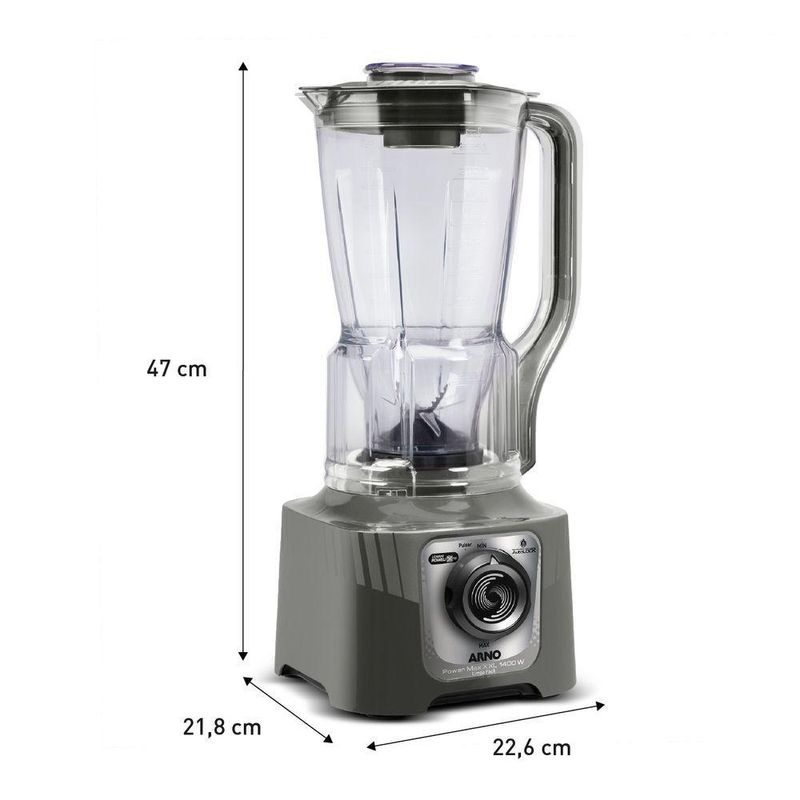 Seu copo de grande capacidade, com 2,25 litros, é perfeito para preparar grandes porções para toda a família de uma só vez. O design moderno na cor cinza adiciona um toque de sofisticação à sua bancada, unindo estilo e uma performance robusta.