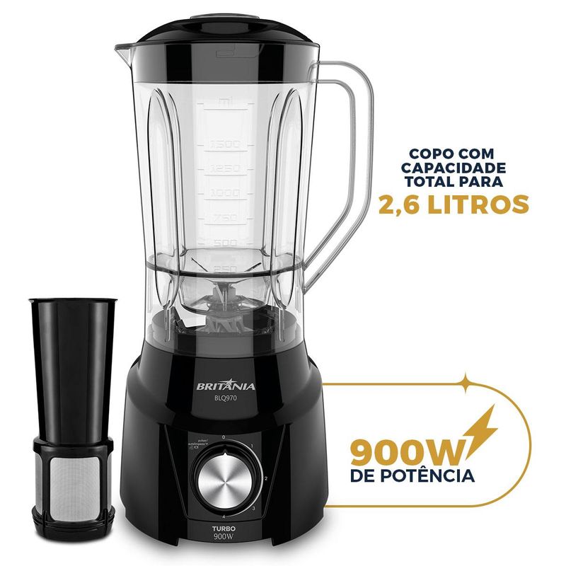 Liquidificador Britânia Turbo tem potência de 900W produto ideal para você que procura alto desempenho na cozinha e versatilidade para prepararvários tipos de alimentos para toda família.
