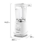 O produto funciona em 12 velocidades e vem com 5 receitas predefinidas para maior precisão no preparo de bolos, massas, sucos e vitaminas. É equipado com uma jarra de plástico ultrarresistente, livre de Bisfenol A, com design ergonômico e uma generosa capacidade total de 3,2 litros.