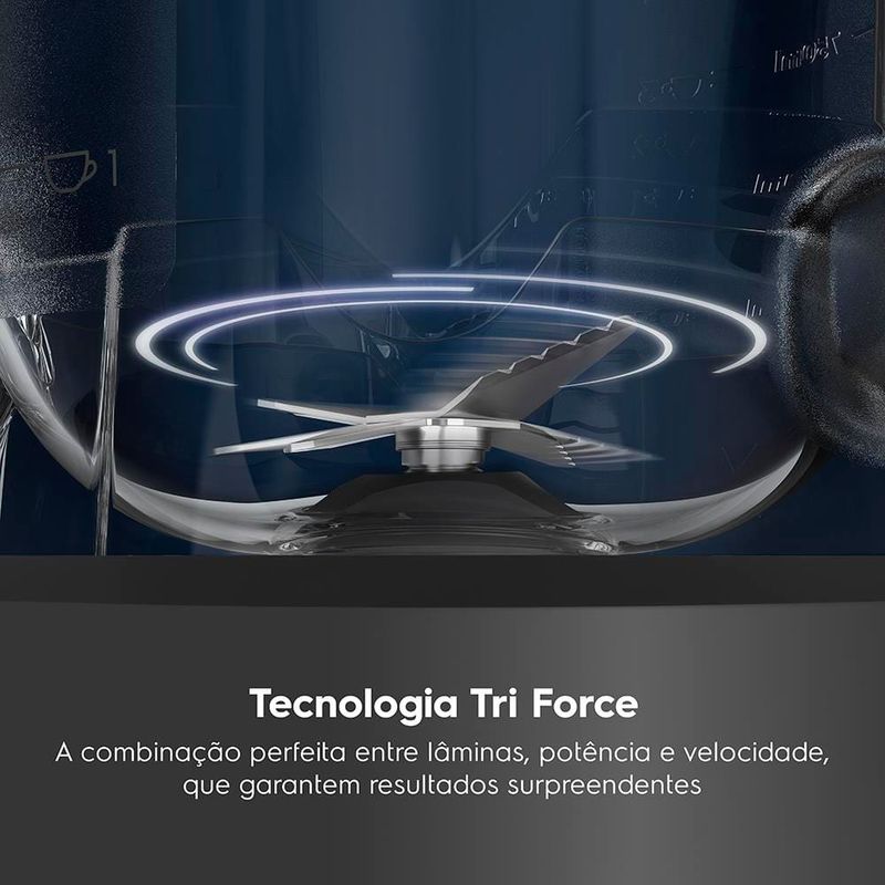 O diferencial fica por conta da Tecnologia TriForce, que une potência, alta velocidade e lâminas ultra afiadas em aço inoxidável, proporcionando até 10x mais eficiência na hora de processar alimentos. Assim, você aproveita ao máximo o sabor e os nutrientes de cada ingrediente.