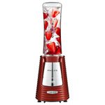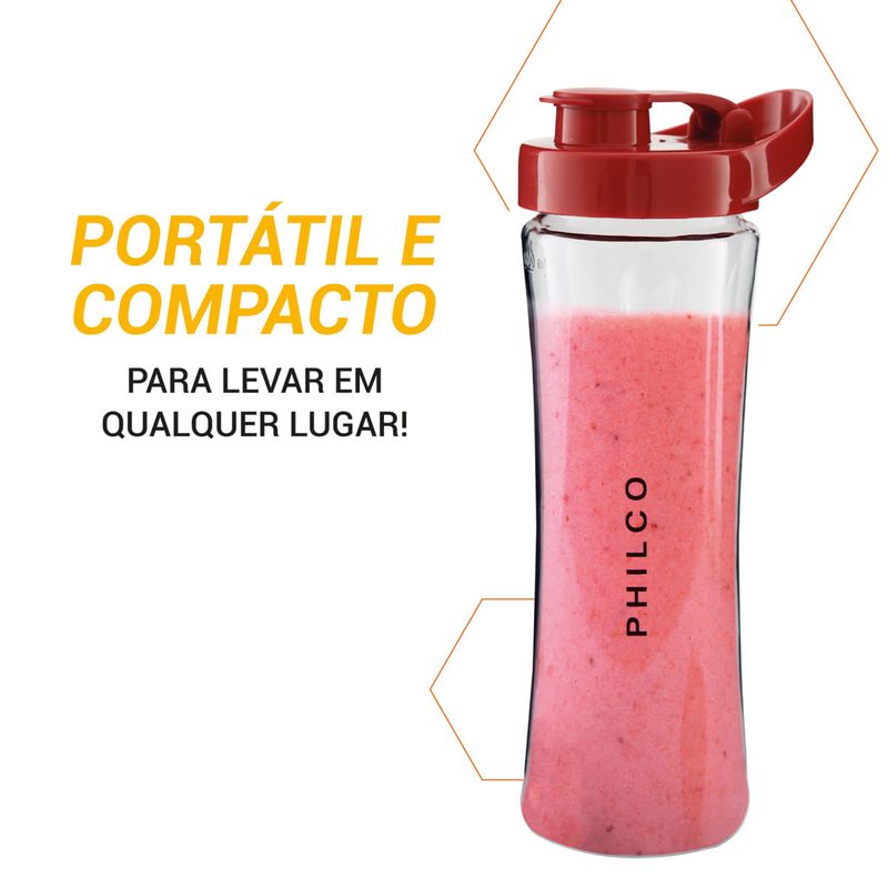 O Liquidificador Philco Fit Retrô Blender Vermelho 300W acompanha 2 copos, altamente resistentes com capacidade para 600ml e duas tampas que se tornam squeezes.