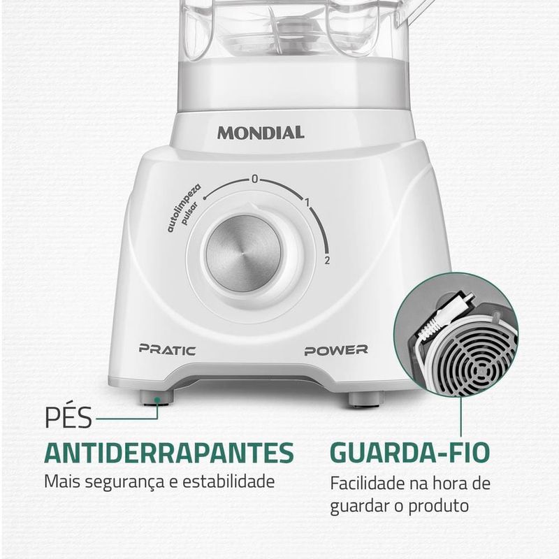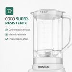 O Liquidificador L97W da Mondial, produzido em polipropileno, oferece resistência a quedas e arranhões, garantindo maior proteção e durabilidade. Sua jarra possui capacidade útil de 1,6 litros, ideal para preparar grandes quantidades de bebida de uma única vez.